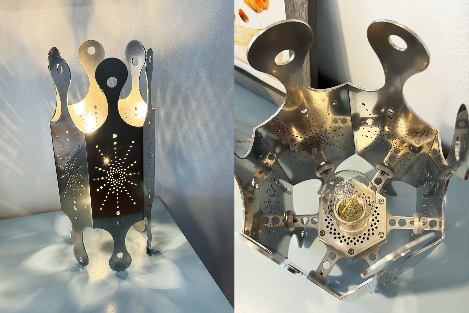 A celebration of light and metal, the Crown Vic lamp was influenced by chrome "mag" hot-rod wheels from the 70s, CNC'd bicycle components from the 90's, and perhaps vintage studio microphones.